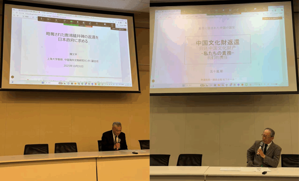 2025年10月31日(金)上海大学と当進める会の共同主催による日中国際研究集会「皇居に隠された中国の国宝」を無事に開催いたしました。当日は、会場におよそ100名、オンラインにも日中両国から数名の方々にご参加いただき誠にありがとうございました。